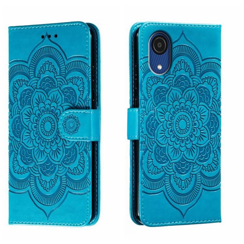 Για Samsung Galaxy A03 Core Sun Mandala ανάγλυφο μοτίβο τηλέφωνο δερμάτινη θήκη (μπλε)