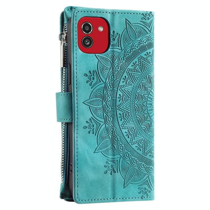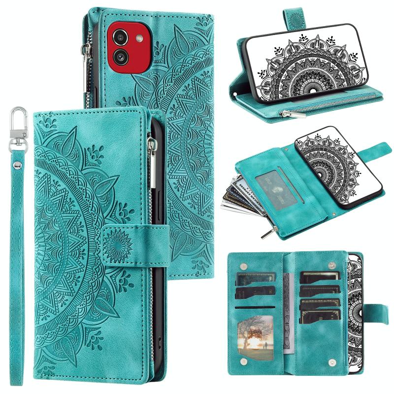 For Samsung Galaxy A03 EU 166mm Multi-Card Totem Zipper Leather Phone Case(Green)