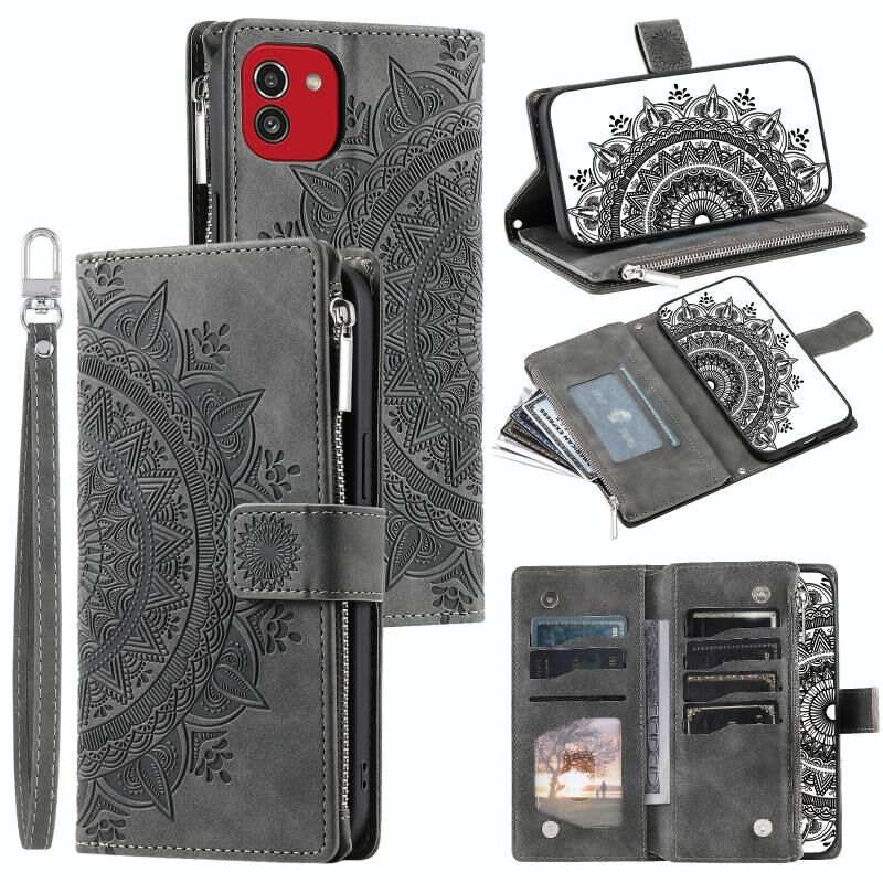 For Samsung Galaxy A03 EU 166mm Multi-Card Totem Zipper Leather Phone Case(Grey)