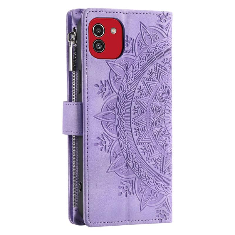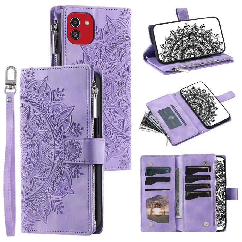 For Samsung Galaxy A03 EU 166mm Multi-Card Totem Zipper Leather Phone Case(Purple)