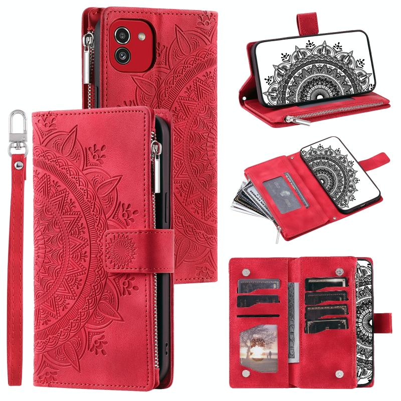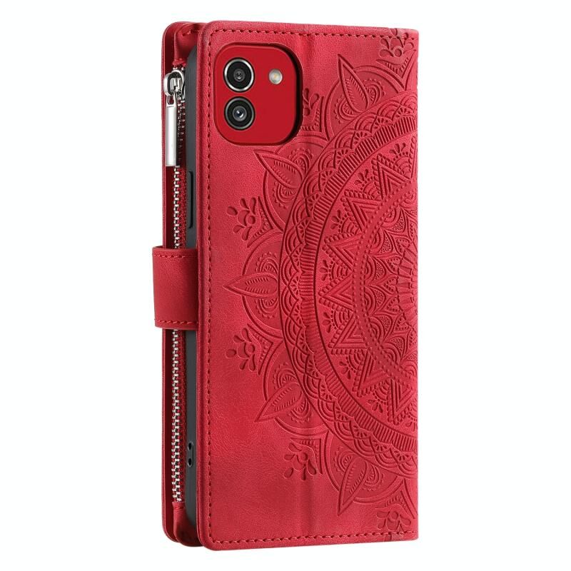 For Samsung Galaxy A03 EU 166mm Multi-Card Totem Zipper Leather Phone Case(Red)