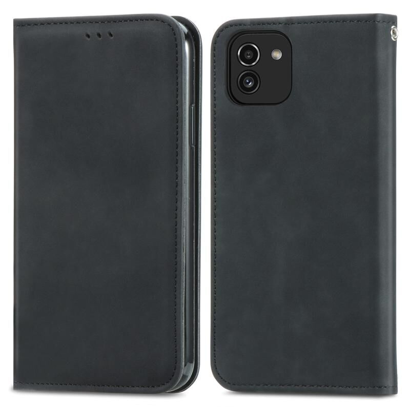 Για Samsung Galaxy A03 ΕΕ 166 χιλιοστά ρετρό δέρμα αίσθηση μαγνητική οριζόντια Flip δερμάτινη θήκη τηλεφώνου (μαύρο)