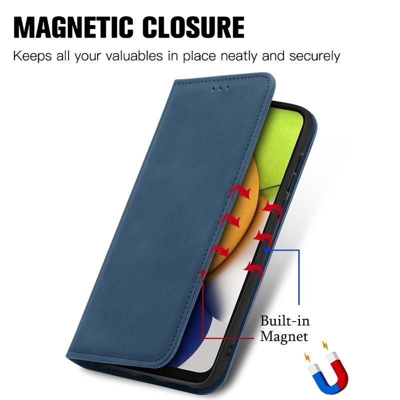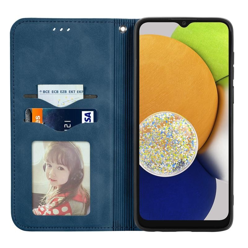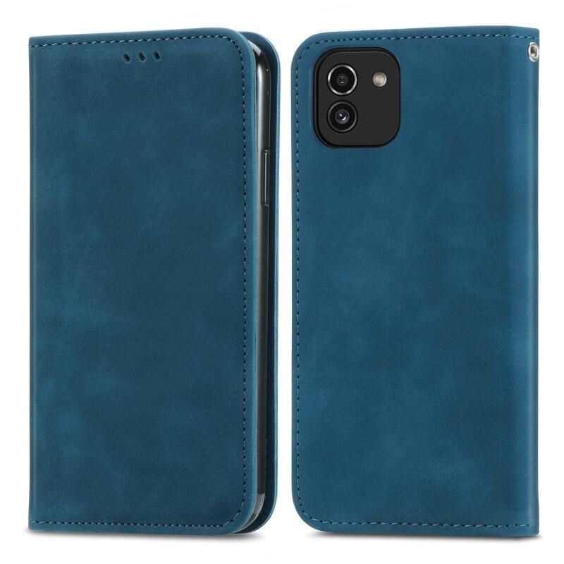 Για Samsung Galaxy A03 ΕΕ 166 χιλιοστά ρετρό δέρμα αίσθηση μαγνητική οριζόντια Flip δέρμα τηλέφωνο υπόθεση (Μπλε)