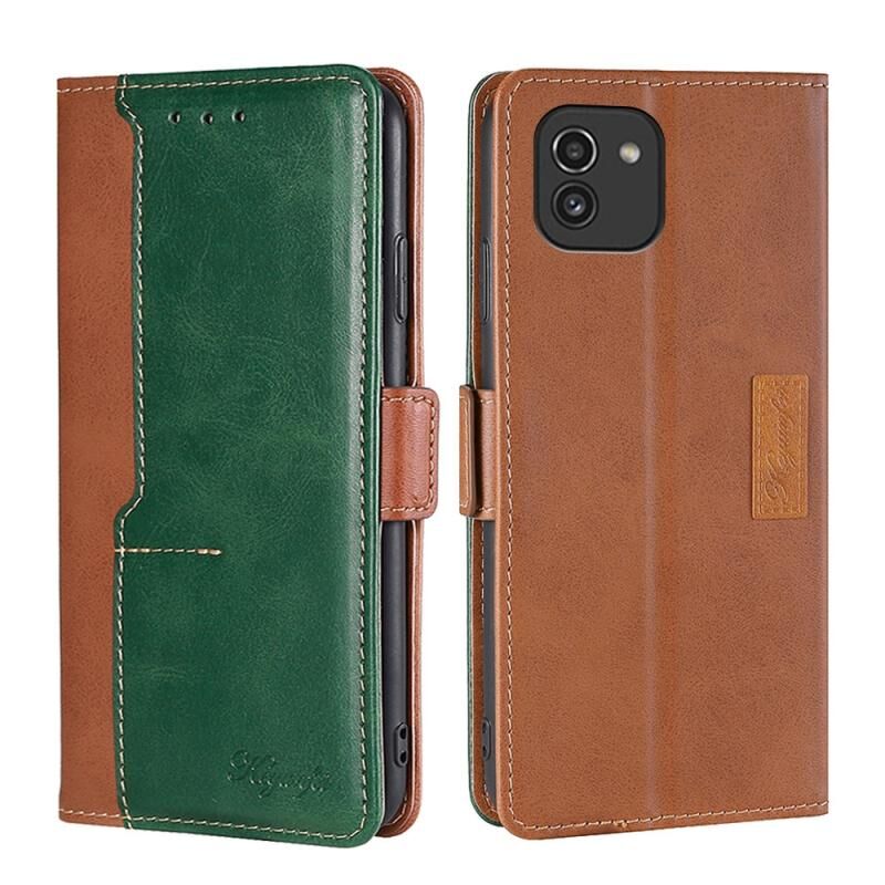 Για το Samsung Galaxy A03 EU Edition 166mm αντίθεση χρώμα πλευρά πόρπη δερμάτινη θήκη τηλεφώνου υπόθεση (ανοιχτό καφέ + πράσινο)