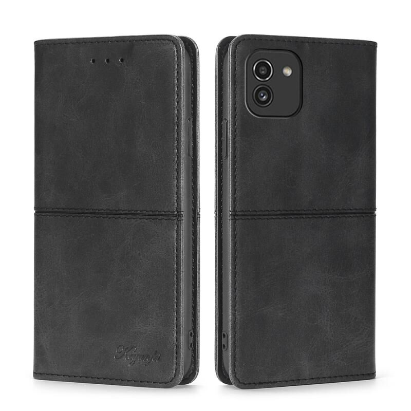 Για Samsung Galaxy A03 EU Edition 166mm Cow Texture μαγνητική οριζόντια Flip δερμάτινη θήκη τηλεφώνου (Μαύρο)
