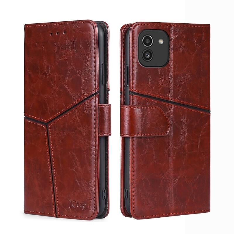 Για Samsung Galaxy A03 ΕΕ Γεωμετρική ραφή οριζόντια Flip TPU + PU δέρμα τηλέφωνο υπόθεση (σκούρο καφέ)