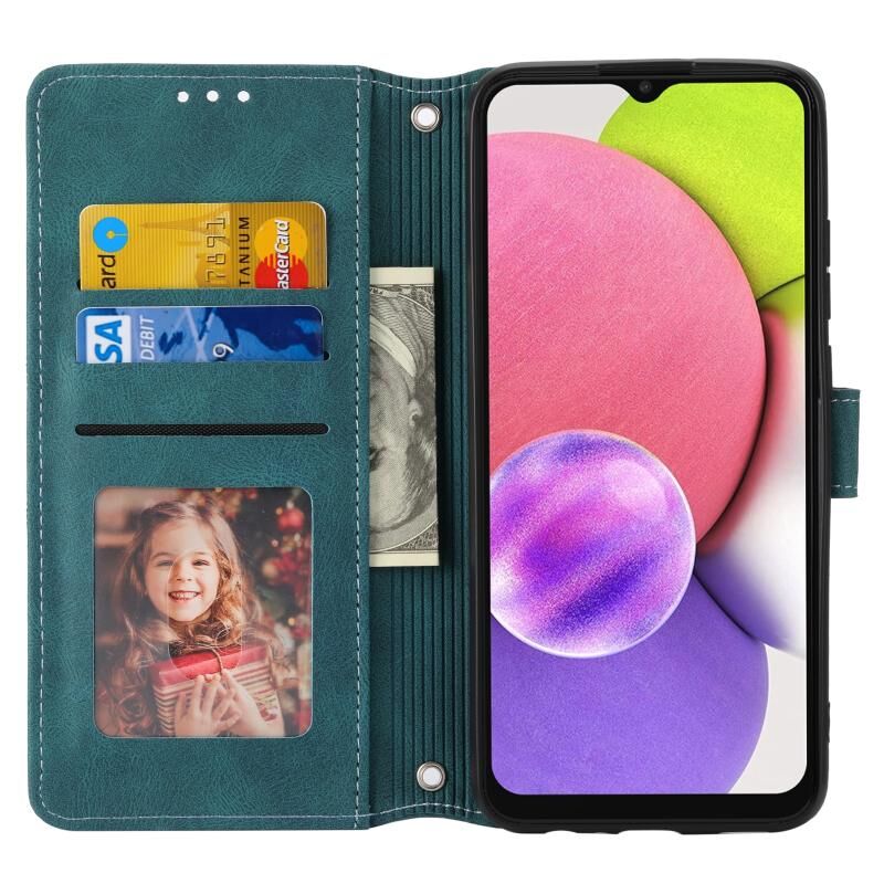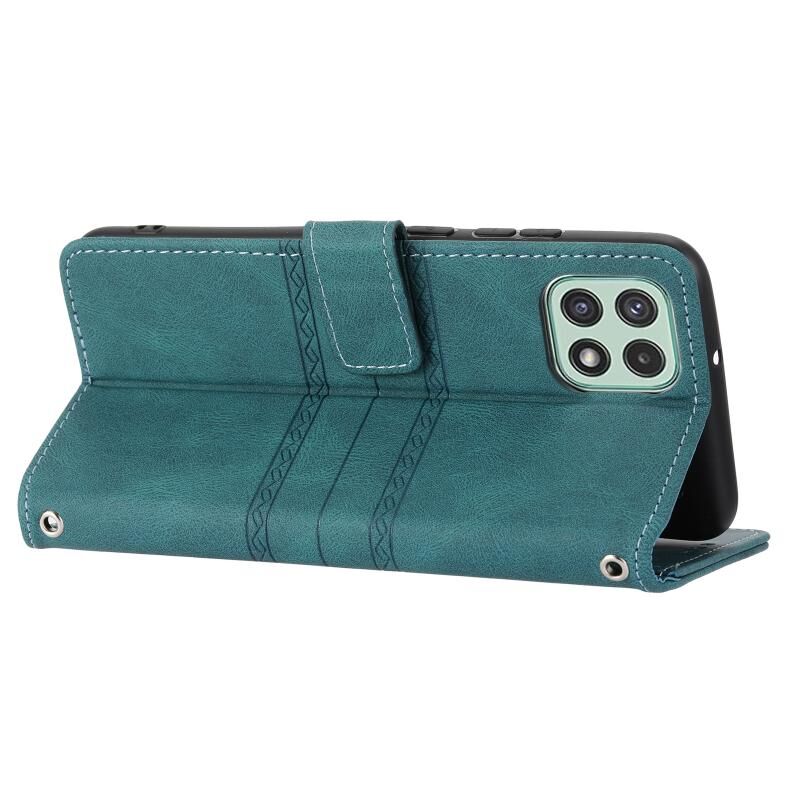 Για Samsung Galaxy A03 έκδοση ΕΕ ανάγλυφο ριγέ μαγνητική πόρπη οριζόντια Flip τηλέφωνο δερμάτινη θήκη (πράσινο)