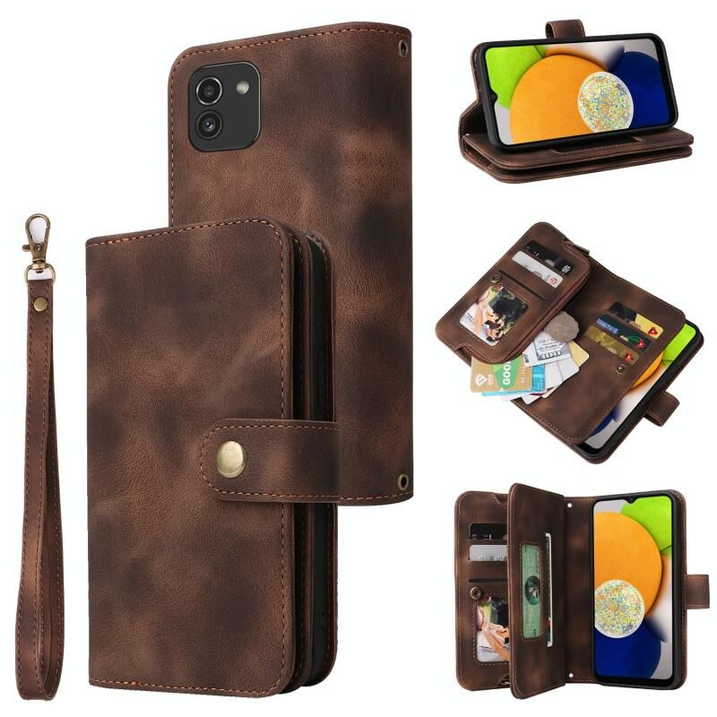 Για Samsung Galaxy A03 έκδοση ΕΕ πολυλειτουργική κάρτα Slot φερμουάρ πορτοφόλι δερμάτινη θήκη τηλεφώνου (καφέ)