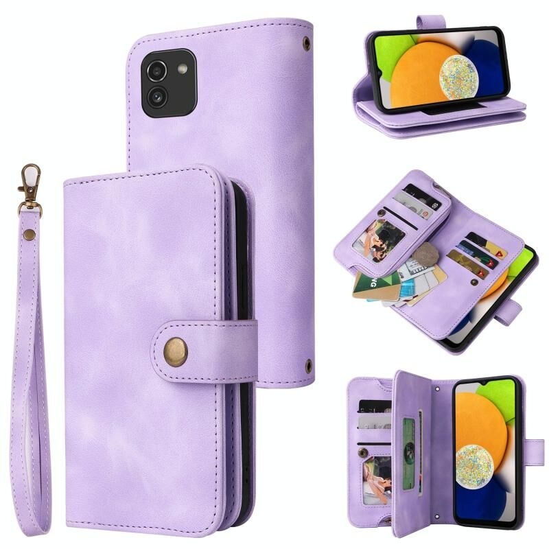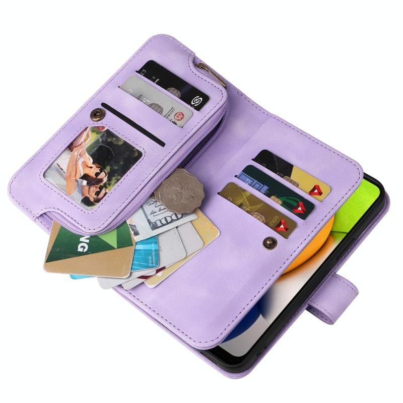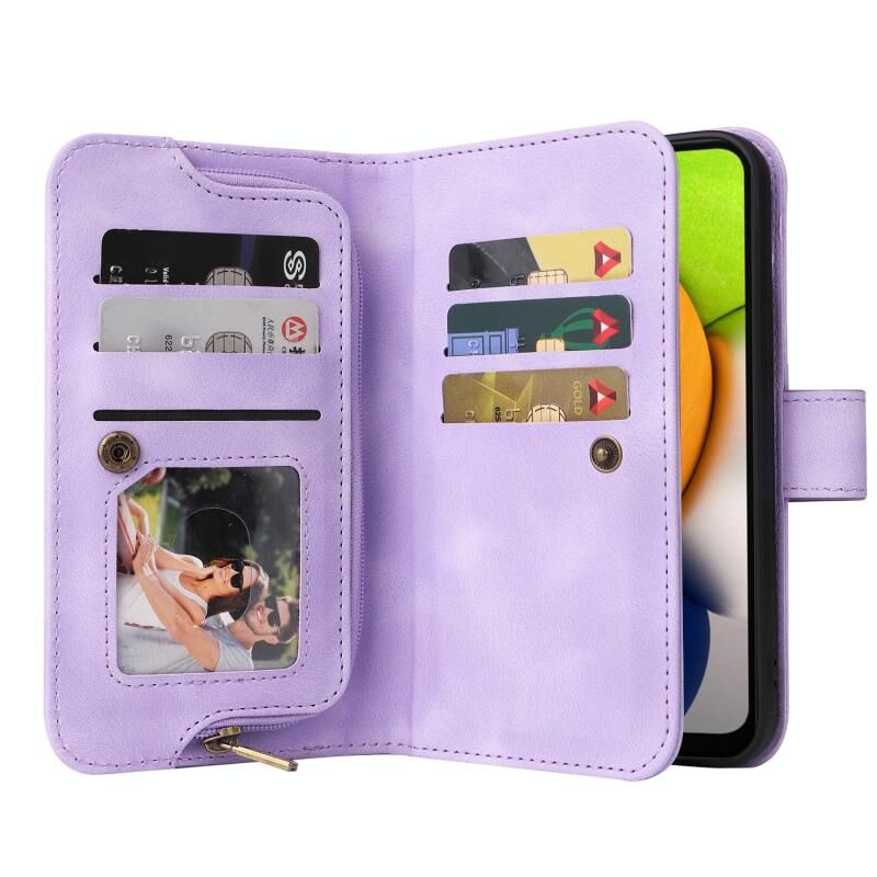 Για Samsung Galaxy A03 έκδοση ΕΕ πολυλειτουργική κάρτα Slot φερμουάρ πορτοφόλι δερμάτινη θήκη τηλεφώνου (μωβ)