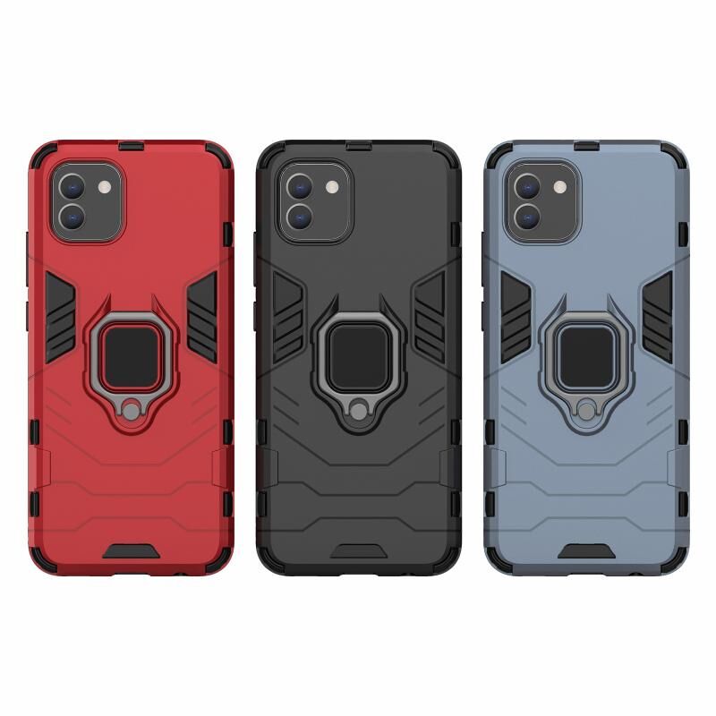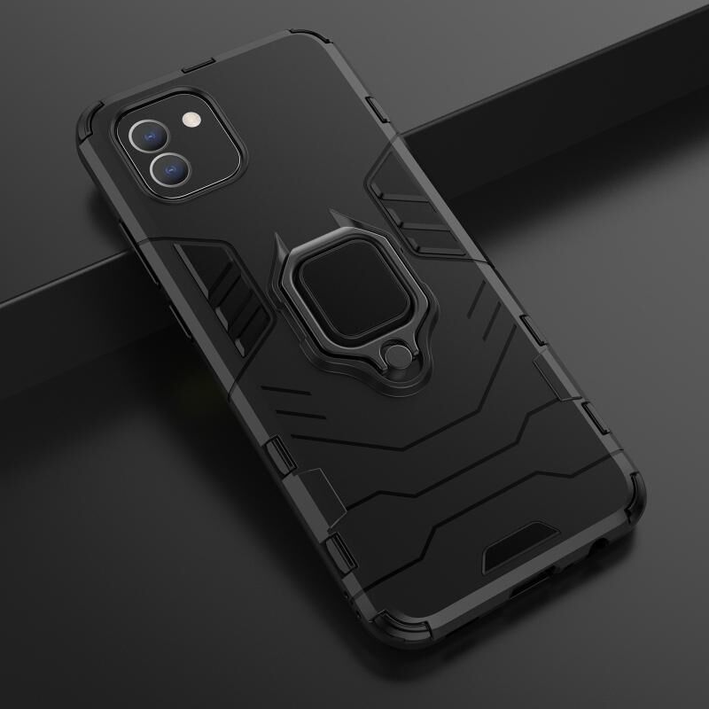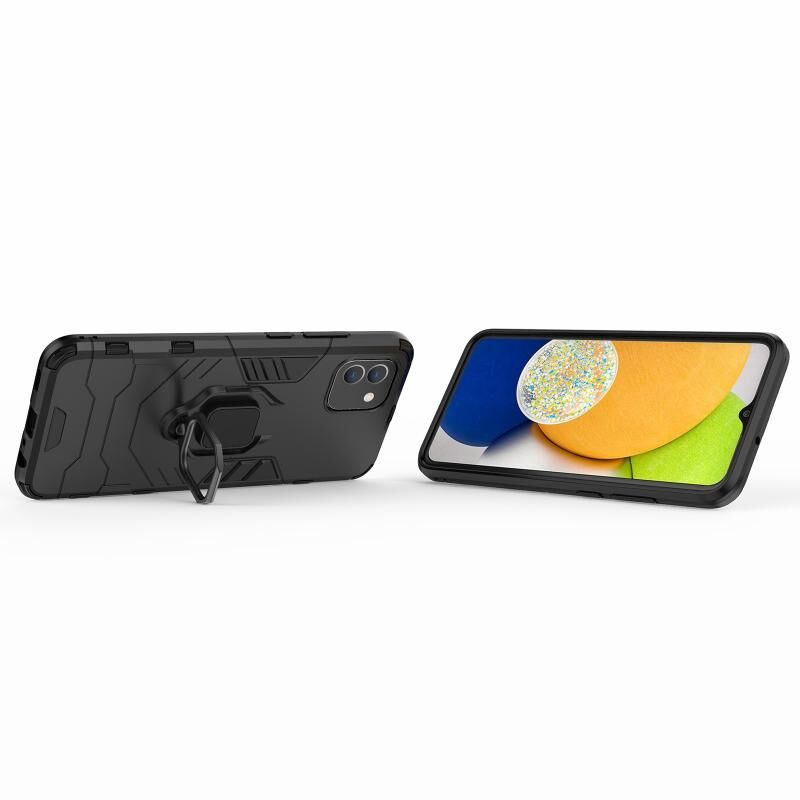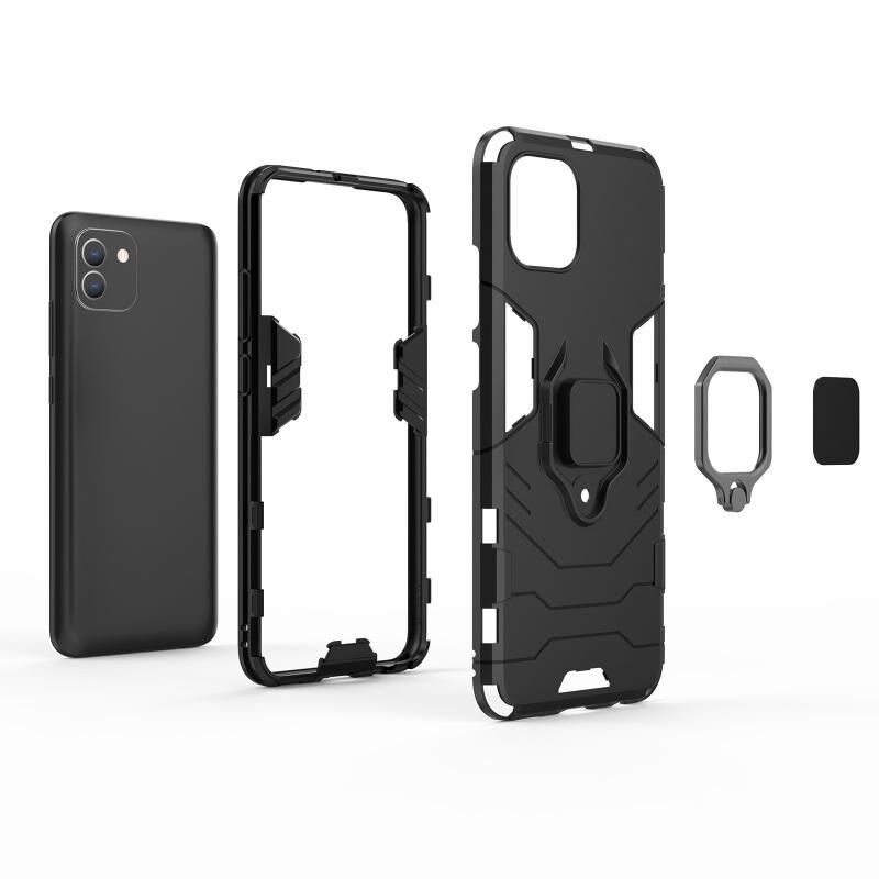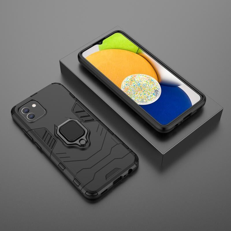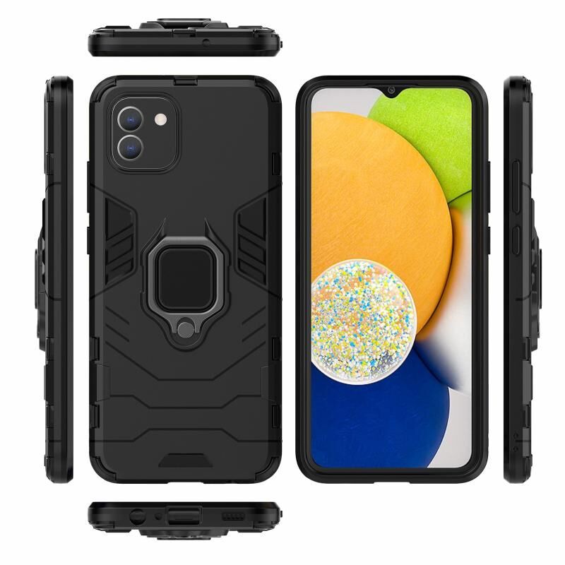 Για Samsung Galaxy A03 έκδοση ΕΕ PC + TPU Shockproof προστατευτική θήκη τηλεφώνου με μαγνητική θήκη δακτυλίου (μαύρο)