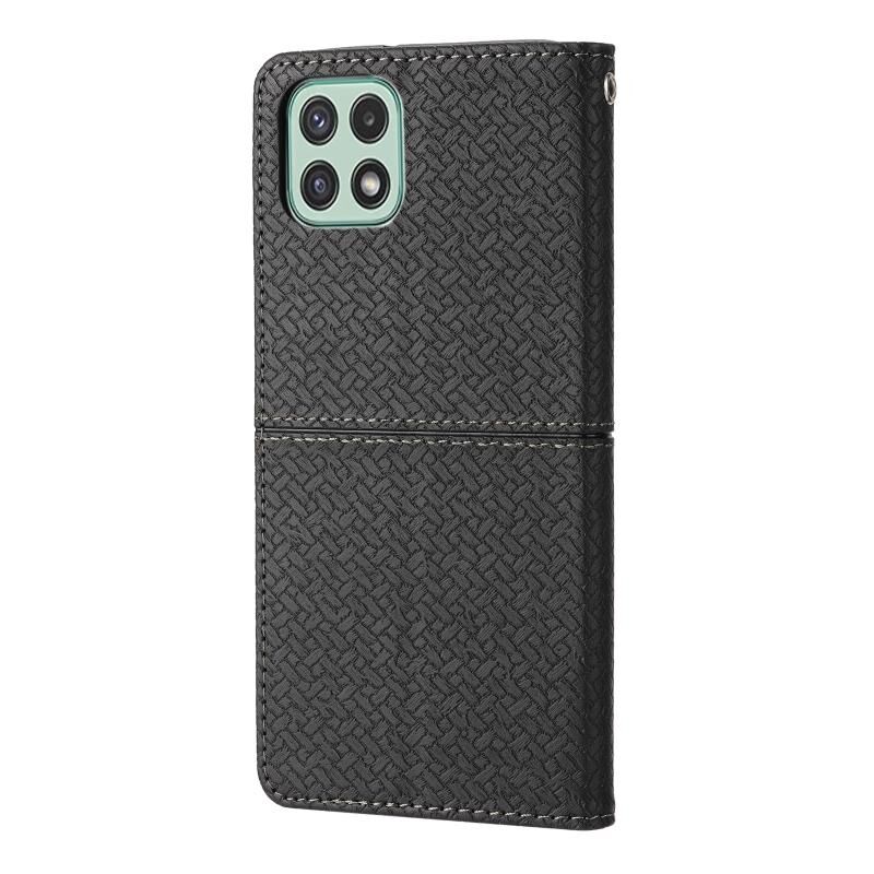 Για Samsung Galaxy A03 έκδοση ΕΕ υφαντά υφή ραφή μαγνητική οριζόντια Flip PU δέρμα τηλέφωνο υπόθεση (μαύρο)