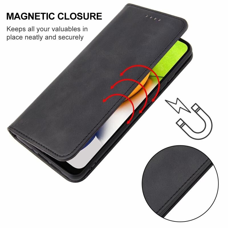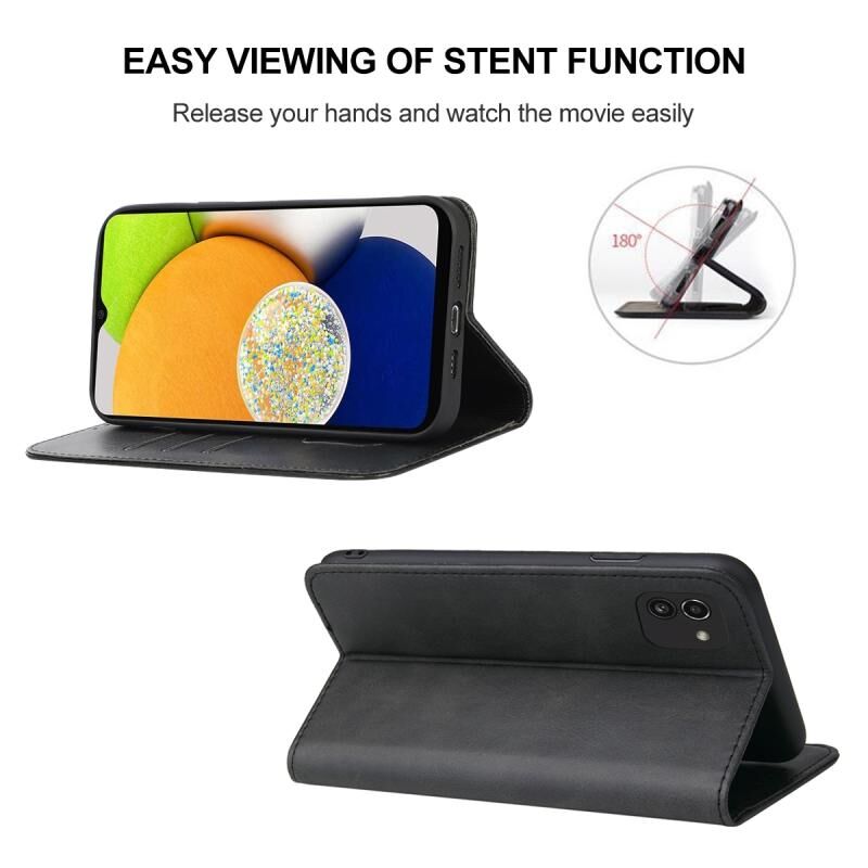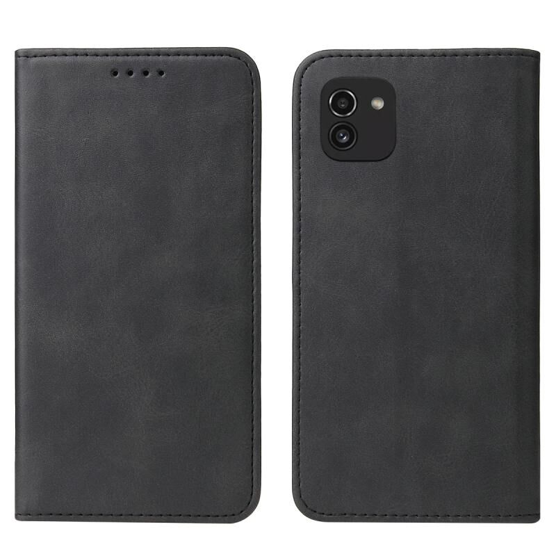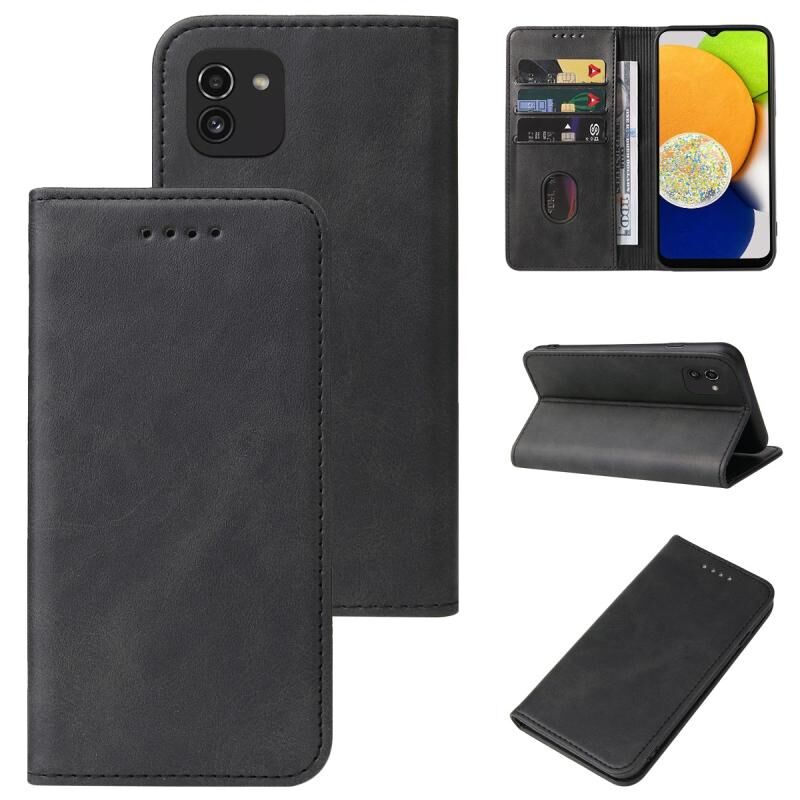 Για Samsung Galaxy A03 Global 164.27mm μαγνητικό κλείσιμο δερμάτινη θήκη τηλεφώνου (Μαύρο)