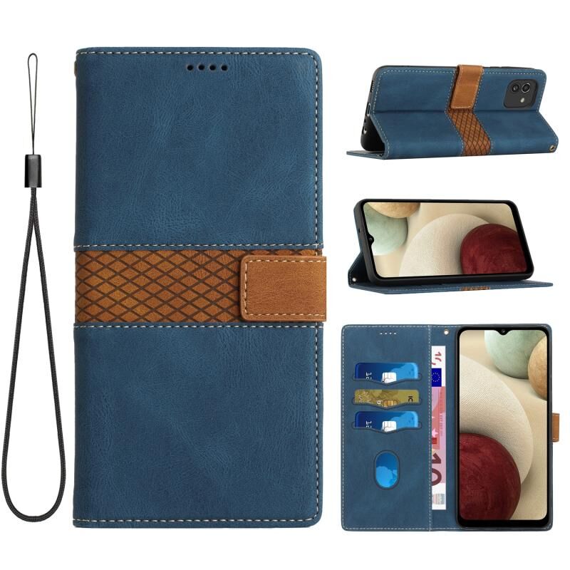 Για Samsung Galaxy A03 Grid Stitching δερμάτινη θήκη τηλεφώνου με κορδόνι (Μπλε)