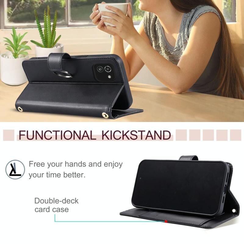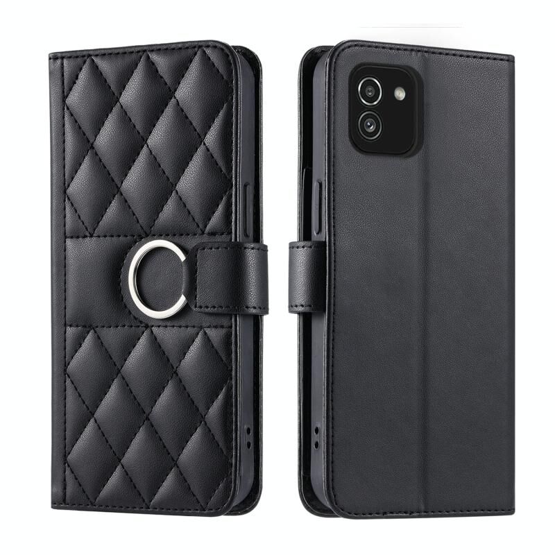 Για Samsung Galaxy A03 Δαχτυλίδι πόρπη ρομβοειδής δερμάτινη θήκη τηλεφώνου (Μαύρο)
