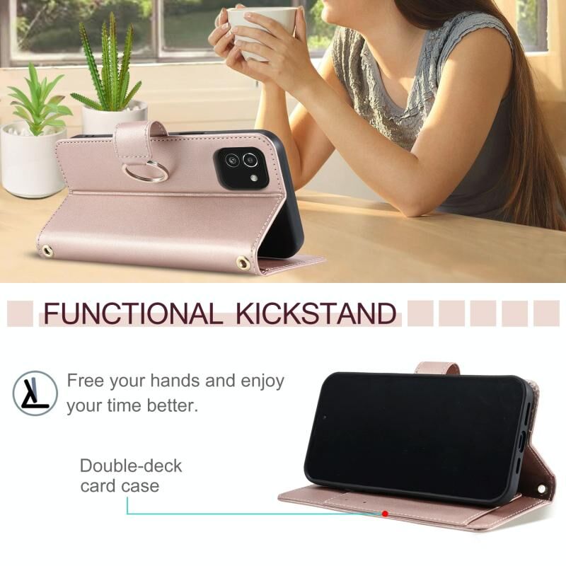 Για Samsung Galaxy A03 Δαχτυλίδι πόρπη ρομβοειδή δερμάτινη θήκη τηλεφώνου (ροζ χρυσό)