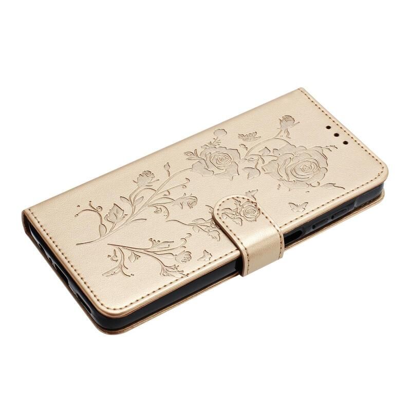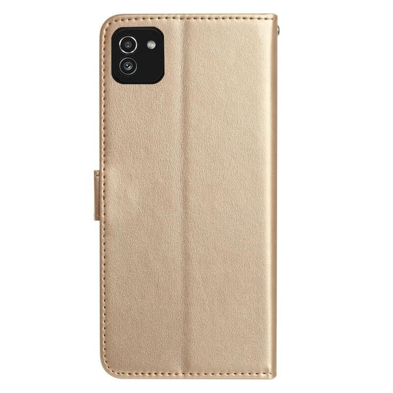 Θήκη τηλεφώνου δερμάτινη με ανάγλυφο σχέδιο ροζ άνθους για Samsung Galaxy A03 (Χρυσός)