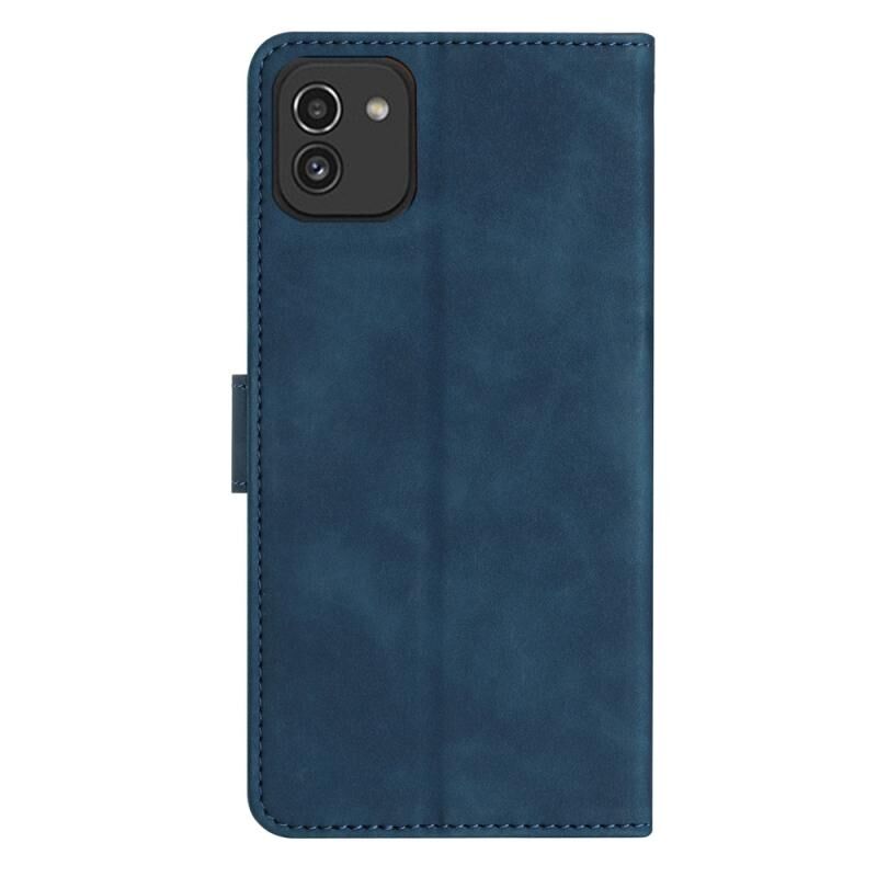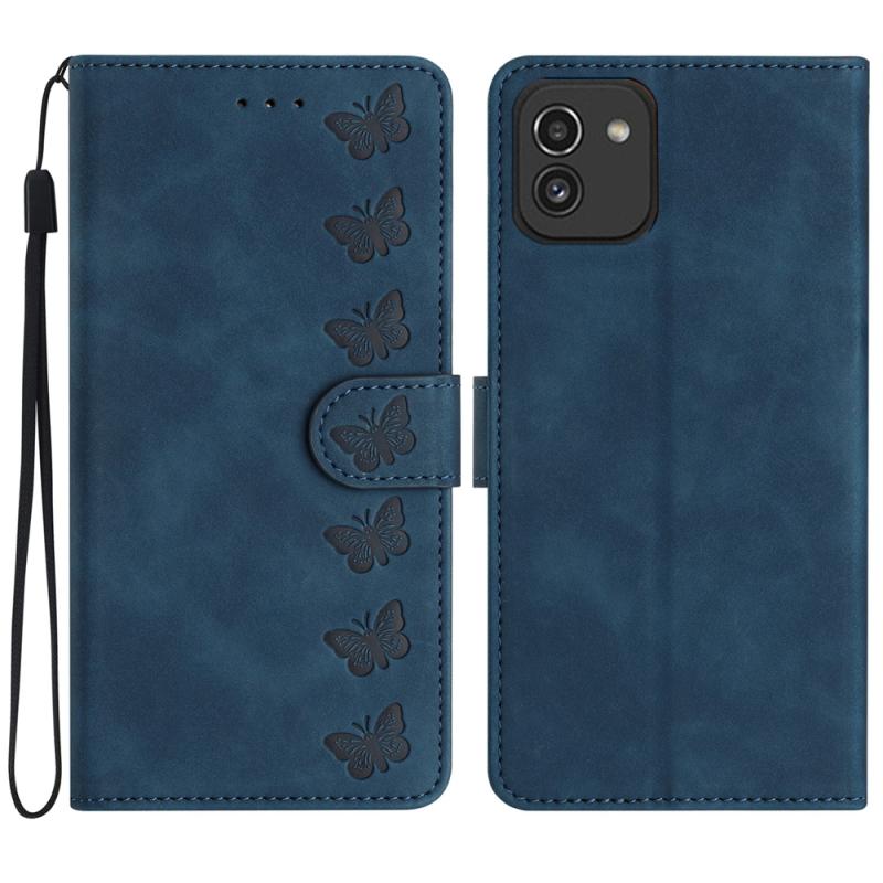 Θήκη τηλεφώνου Samsung Galaxy A03 Seven Butterflies, δερμάτινη με ανάγλυφο σχέδιο (Μπλε)