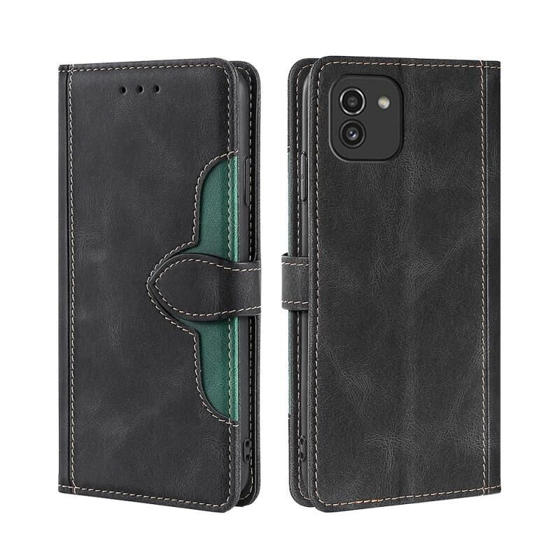Για Samsung Galaxy A03 δέρμα αίσθηση άχυρο καπέλο μαγνητική πόρπη δερμάτινη θήκη τηλεφώνου (Μαύρο)