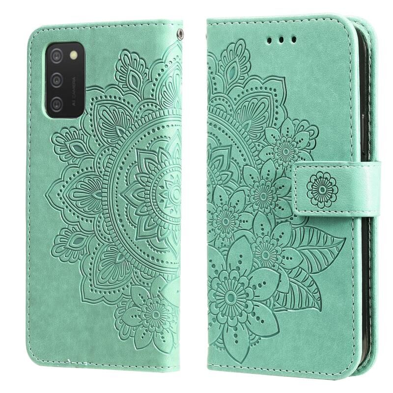 Για Samsung Galaxy A03s (164.2mm) 7-πέταλο λουλούδια ανάγλυφο Flip δερμάτινη θήκη τηλεφώνου με θήκη & υποδοχές για κάρτες (πράσινο)