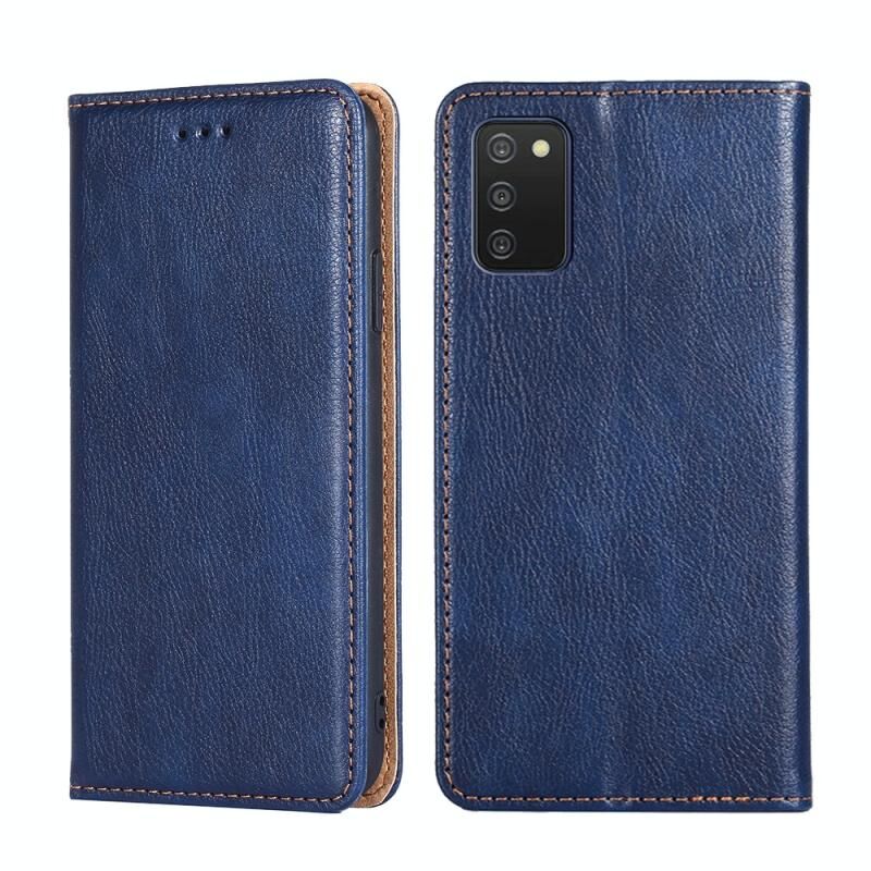 Για το Samsung Galaxy A03s 164.2mm γυαλιστερό λάδι στερεό χρώμα μαγνητικό δέρμα τηλέφωνο υπόθεση (μπλε)