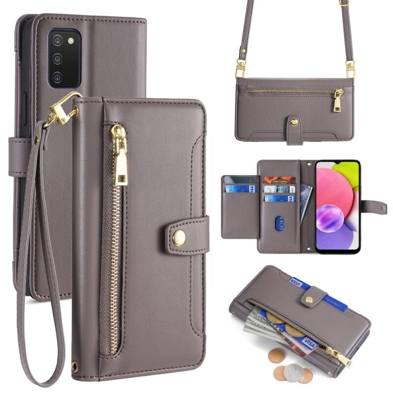 Για Samsung Galaxy A03s 164.2mm Πρόβατα Υφή Cross-body φερμουάρ πορτοφόλι δερμάτινη θήκη τηλεφώνου (γκρι)