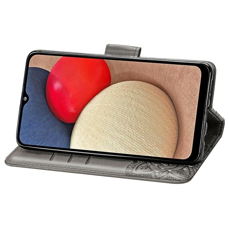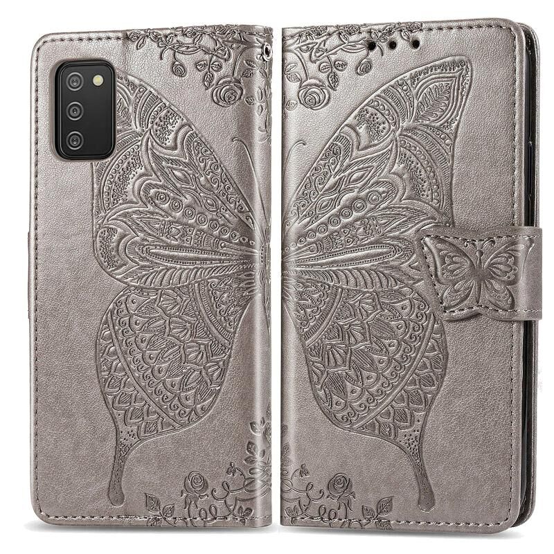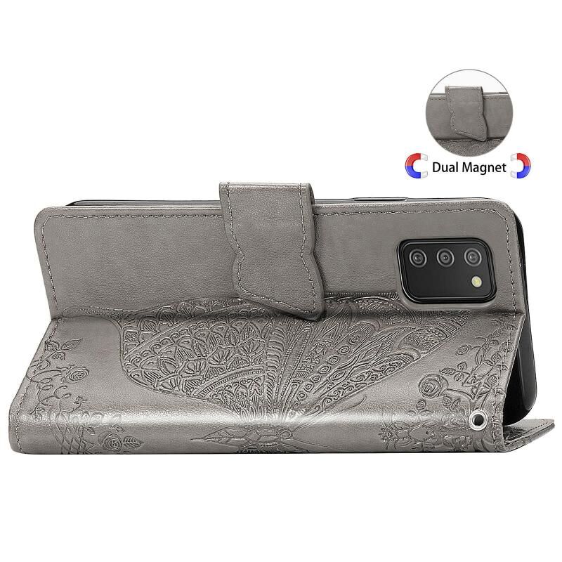 Για Samsung Galaxy A03s 164mm πεταλούδα αγάπη λουλούδια ανάγλυφο οριζόντια Flip δερμάτινη θήκη με κάτοχο & υποδοχές για κάρτες & πορτοφόλι & κορδόνι (Γκρι)