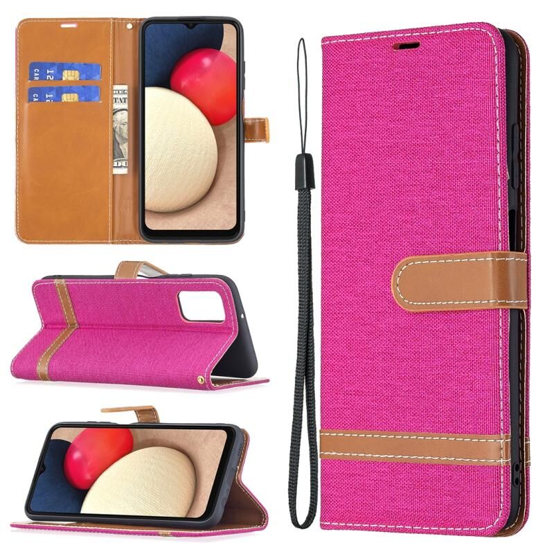 Για Samsung Galaxy A03s 164mm χρώμα ταιριάζει με τζιν υφή οριζόντια Flip δερμάτινη θήκη με θήκη & υποδοχές για κάρτες & πορτοφόλι & κορδόνι (Rose Red)