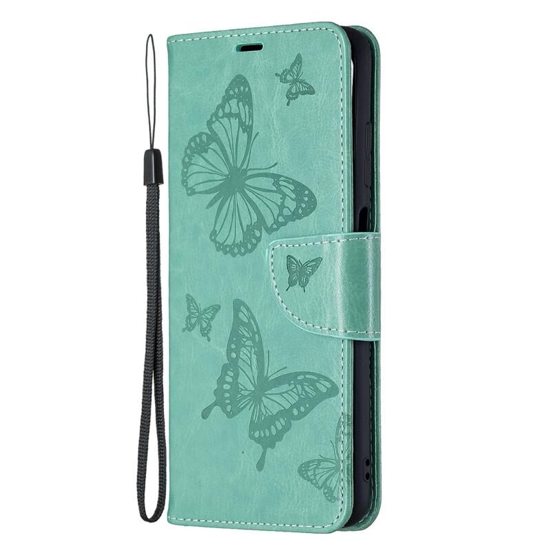 Για Samsung Galaxy A03s 164mm ανάγλυφο δύο πεταλούδες μοτίβο οριζόντια Flip PU δέρμα υπόθεση με κάτοχο & υποδοχή για κάρτες & πορτοφόλι & Lanyard (πράσινο)