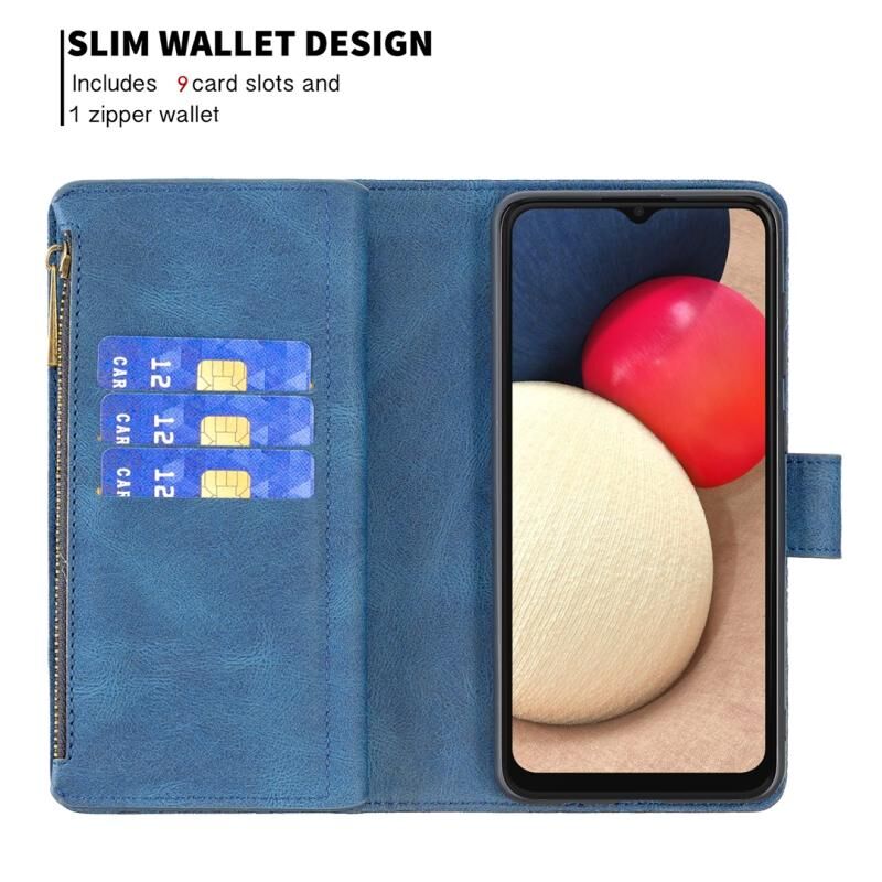 Για Samsung Galaxy A03s 164mm Flying πεταλούδα ανάγλυφο μοτίβο φερμουάρ οριζόντια Flip δερμάτινη θήκη με κάτοχο & υποδοχές για κάρτες & πορτοφόλι (μπλε)