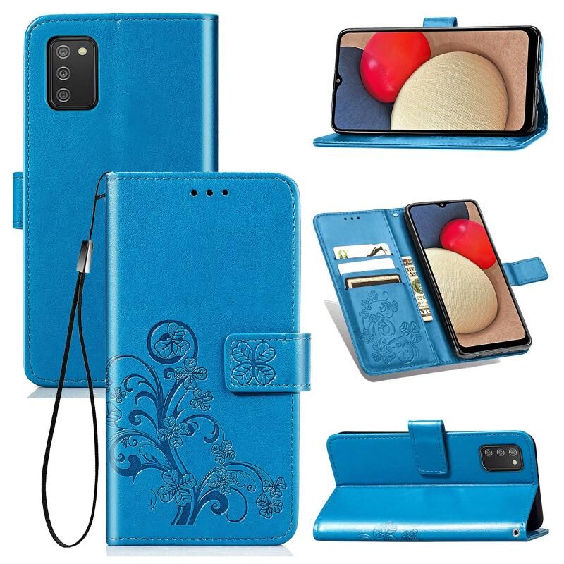 Για Samsung Galaxy A03s 164mm Four-leaf Clasp ανάγλυφη δερμάτινη θήκη με κορδόνι & υποδοχή για κάρτες & πορτοφόλι & θήκη (Μπλε)