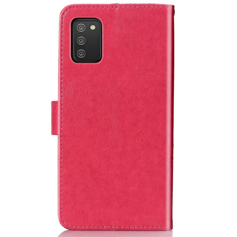 Για το Samsung Galaxy A03s 164mm Four-leaf Clasp ανάγλυφη δερμάτινη θήκη με κορδόνι & υποδοχή για κάρτες & πορτοφόλι & θήκη (Ματζέντα)