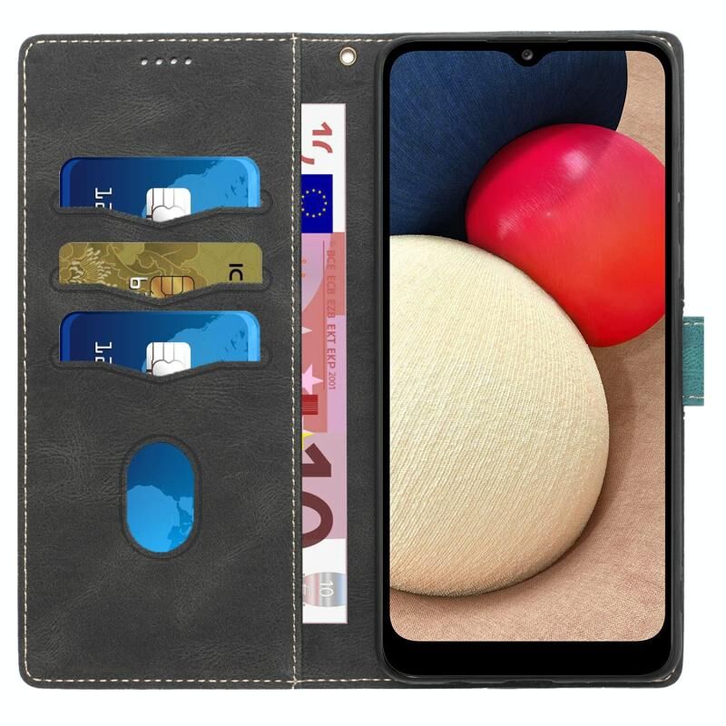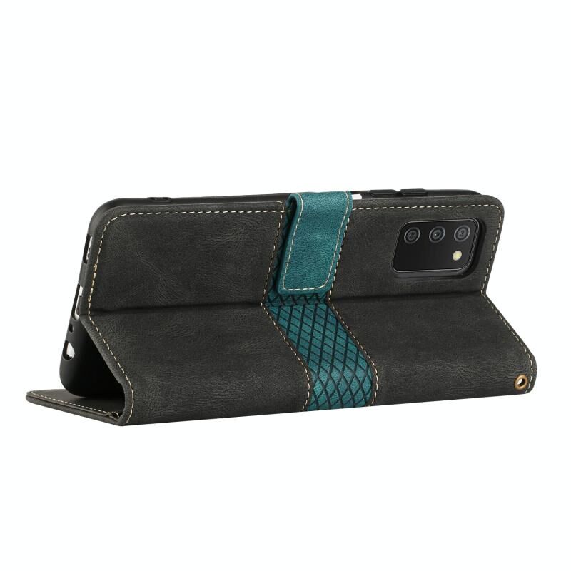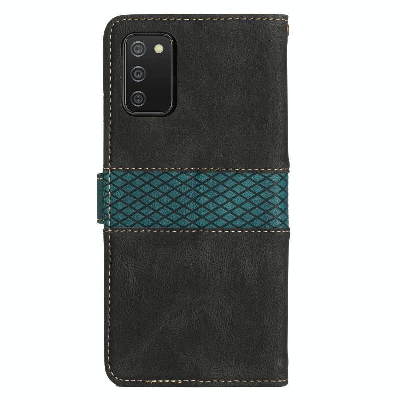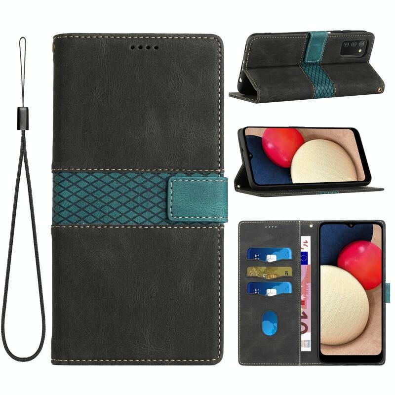 Για Samsung Galaxy A03s 164mm Grid ραφή δερμάτινη θήκη τηλεφώνου με κορδόνι (μαύρο)
