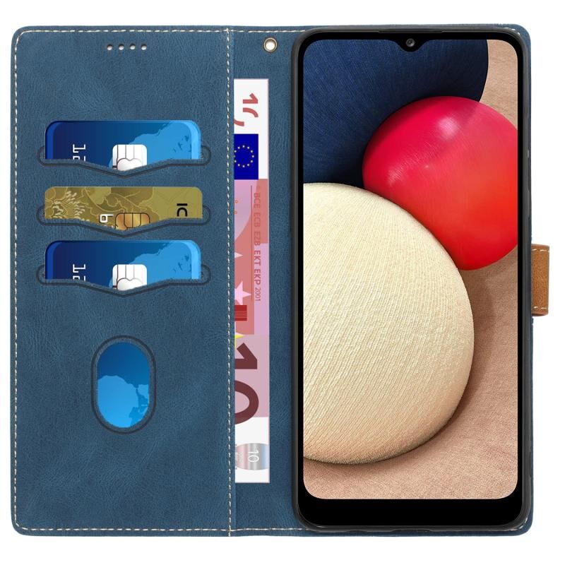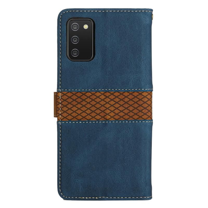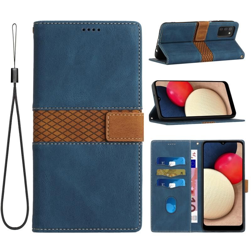 Για Samsung Galaxy A03s 164mm Grid ραφή δερμάτινη θήκη τηλεφώνου με κορδόνι (μπλε)