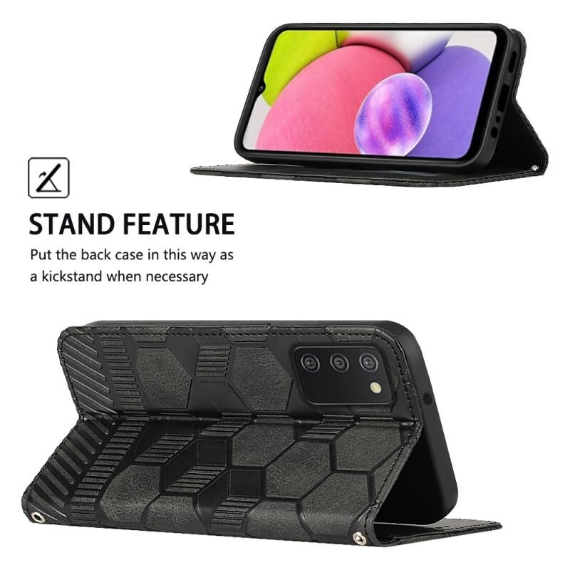 Για Samsung Galaxy A03s 164mm Ινδία ποδόσφαιρο υφή μαγνητική δερμάτινη θήκη Flip τηλέφωνο (Μαύρο)