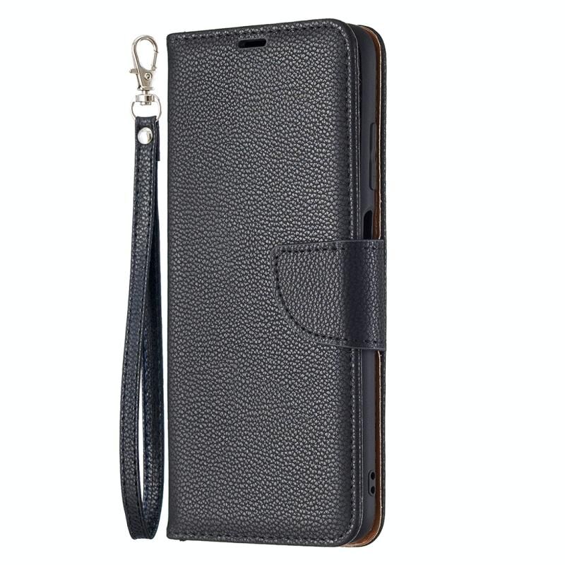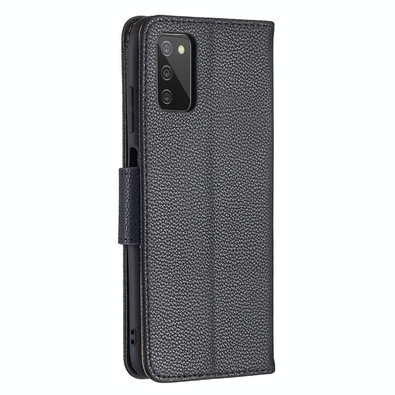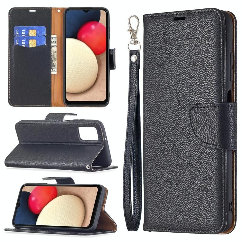 Για Samsung Galaxy A03s 164mm Litchi υφή καθαρό χρώμα οριζόντια Flip δερμάτινη θήκη με θήκη & υποδοχές για κάρτες & πορτοφόλι & κορδόνι (Μαύρο)