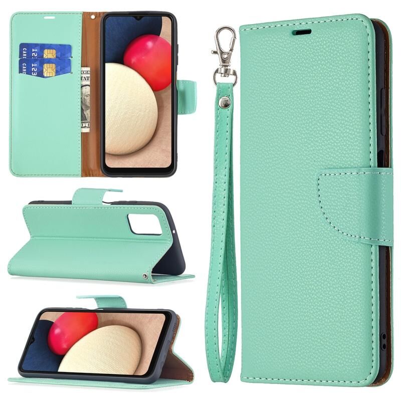 Για Samsung Galaxy A03s 164mm Litchi υφή καθαρό χρώμα οριζόντια Flip δερμάτινη θήκη με θήκη & υποδοχές για κάρτες & πορτοφόλι & κορδόνι (πράσινο)