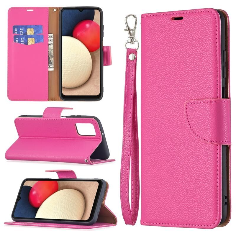 Για Samsung Galaxy A03s 164mm Litchi υφή καθαρό χρώμα οριζόντια Flip δερμάτινη θήκη με θήκη & υποδοχές για κάρτες & πορτοφόλι & κορδόνι (Rose Red)