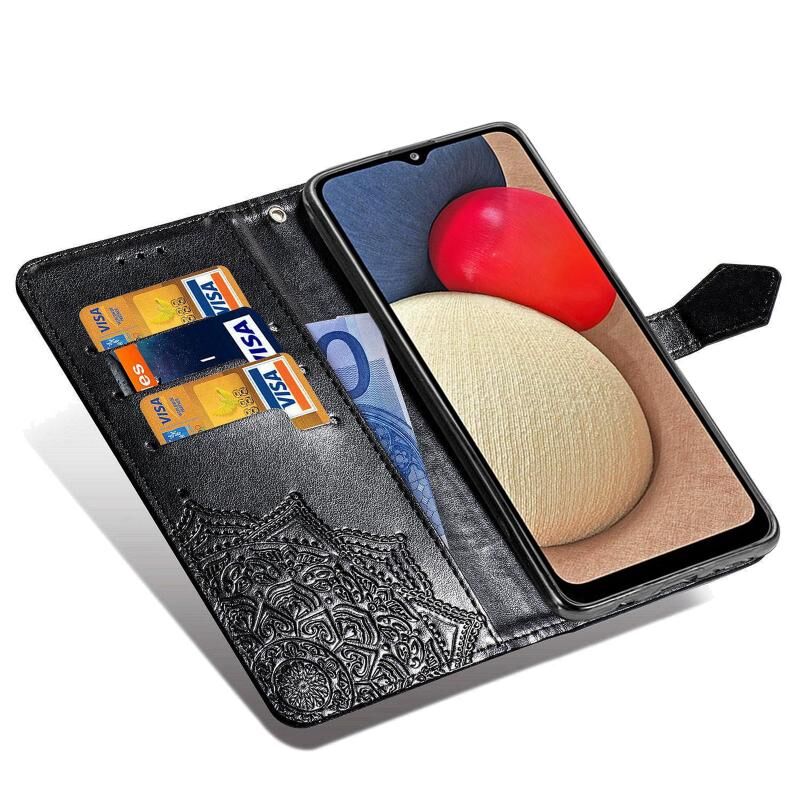 Για Samsung Galaxy A03s 164mm Mandala λουλούδι ανάγλυφο οριζόντια Flip δερμάτινη θήκη με θήκη & τρεις υποδοχές για κάρτες & πορτοφόλι & κορδόνι (Μαύρο)