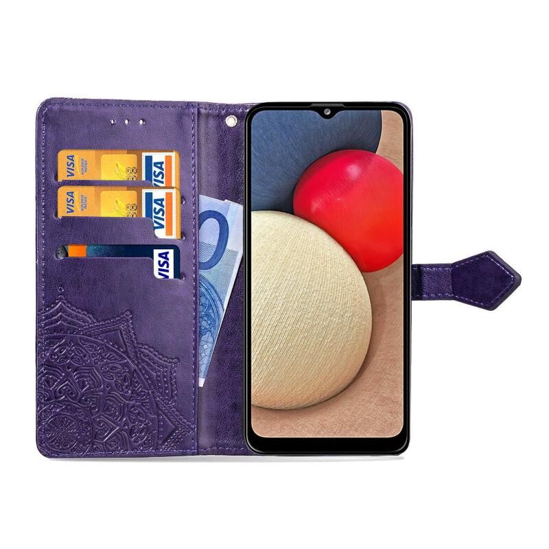Για Samsung Galaxy A03s 164mm Mandala λουλούδι ανάγλυφο οριζόντια Flip δερμάτινη θήκη με θήκη & τρεις υποδοχές για κάρτες & πορτοφόλι & κορδόνι (μωβ)