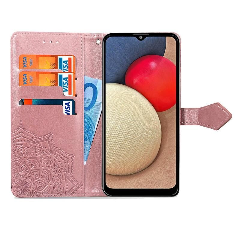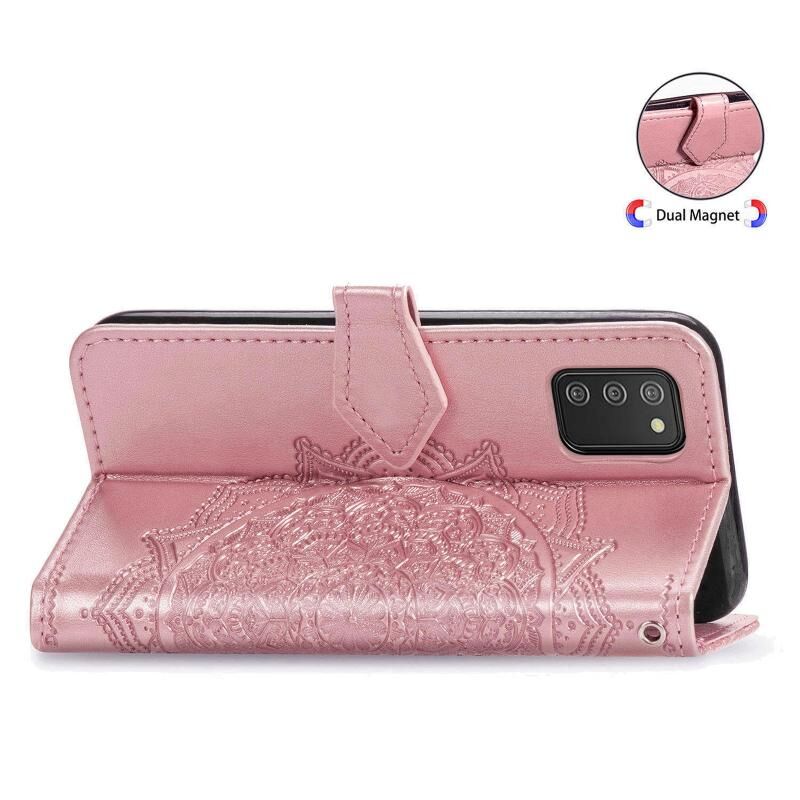 Για Samsung Galaxy A03s 164mm Mandala λουλούδι ανάγλυφο οριζόντια Flip δερμάτινη θήκη με θήκη & τρεις υποδοχές για κάρτες & πορτοφόλι & κορδόνι (Rose Gold)