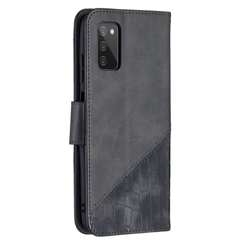 Θήκη Samsung Galaxy A03s 164mm σε ταίριαστο χρώμα με υφή κροκόδειλου, οριζόντια αναδιπλούμενη από δερματίνη PU με πορτοφόλι, βάση στήριξης & θήκες για κάρτες (Μαύρο)