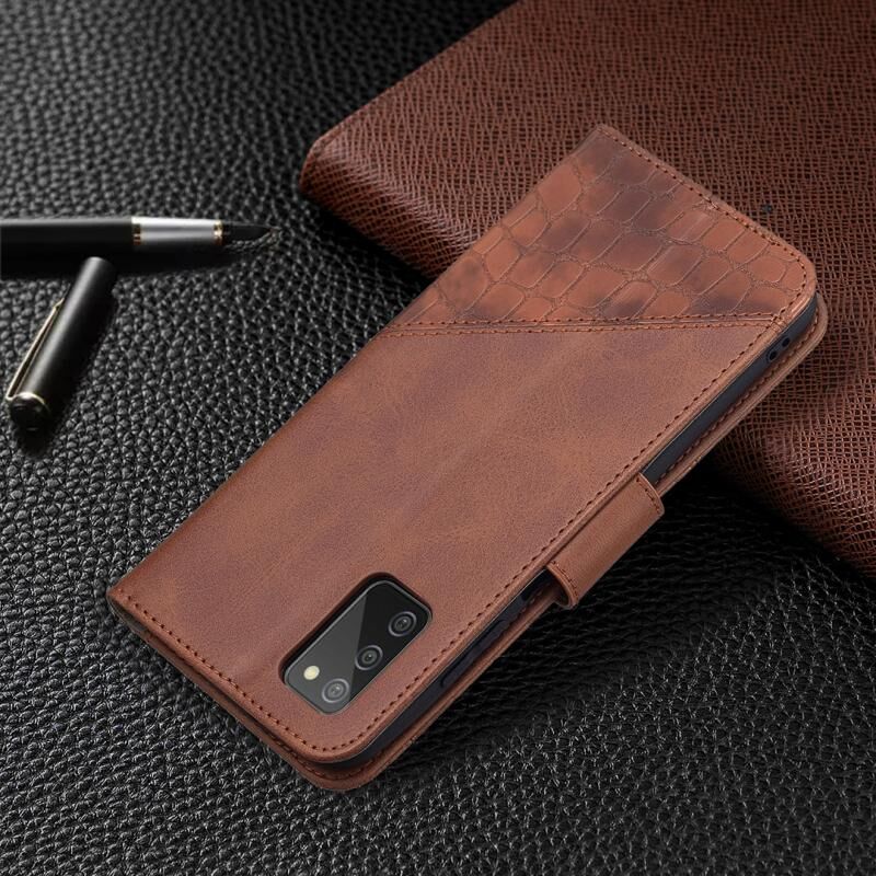 Θήκη Samsung Galaxy A03s 164mm σε ταίριαστο χρώμα με υφή κροκόδειλου, οριζόντια αναδιπλούμενη από δερματίνη PU με πορτοφόλι, βάση στήριξης & θήκες για κάρτες (Μαύρο)