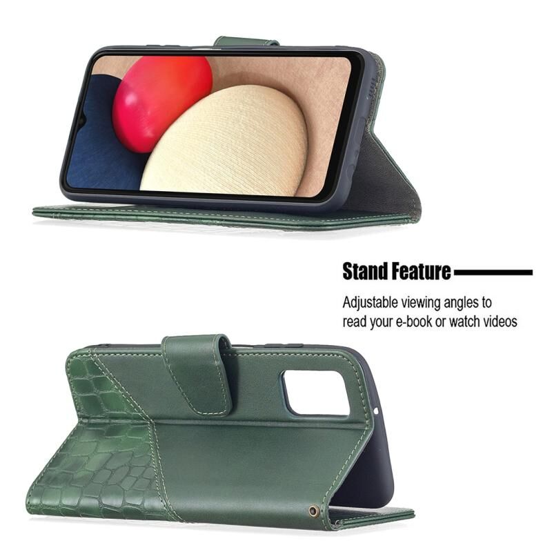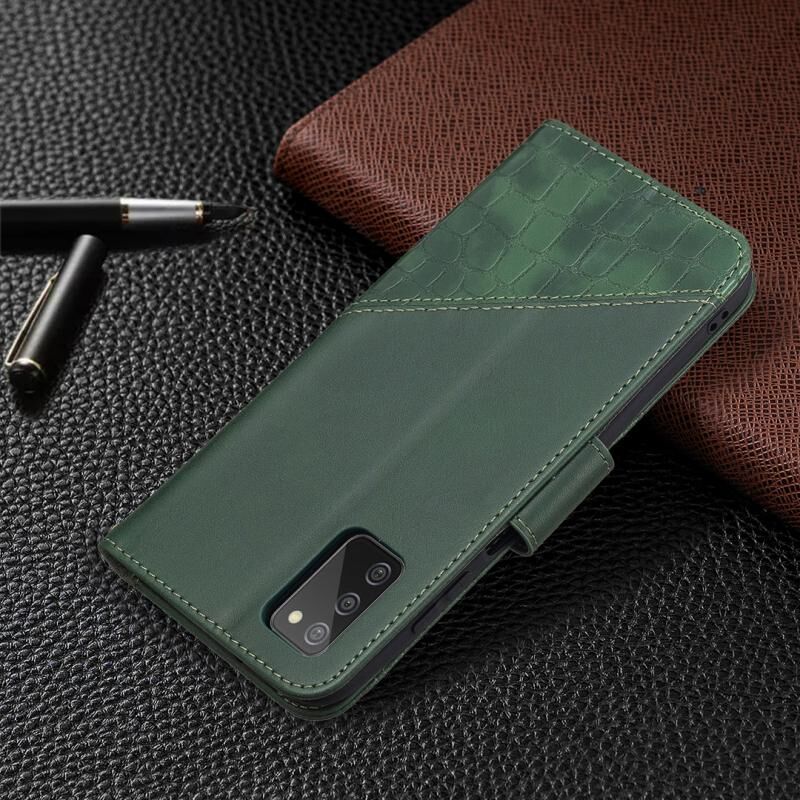 Θήκη Samsung Galaxy A03s 164mm σε ταίριαστο χρώμα με υφή κροκόδειλου, οριζόντια αναδιπλούμενη από δερματίνη PU με πορτοφόλι, βάση στήριξης & θήκες για κάρτες (Μαύρο)