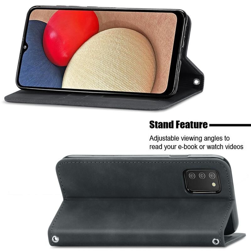 Για Samsung Galaxy A03s 164mm Retro Skin Feel Μαγνητική οριζόντια Flip δερμάτινη θήκη με θήκη & υποδοχές για κάρτες & πορτοφόλι & κορνίζα φωτογραφιών (Μαύρο)
