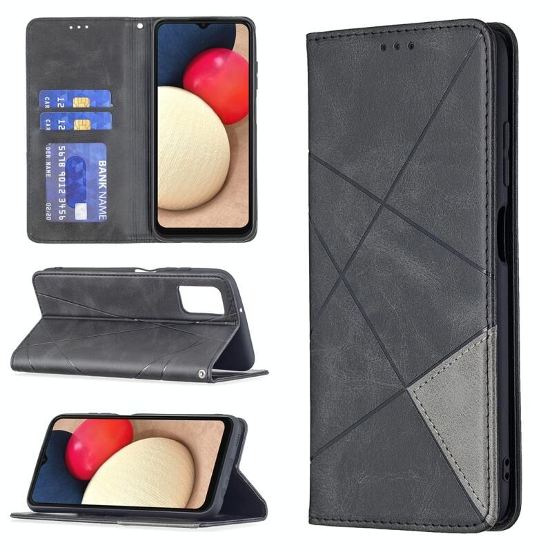 Για Samsung Galaxy A03s 164mm Rhombus υφή οριζόντια Flip μαγνητική δερμάτινη θήκη με θήκη & υποδοχές για κάρτες (μαύρο)