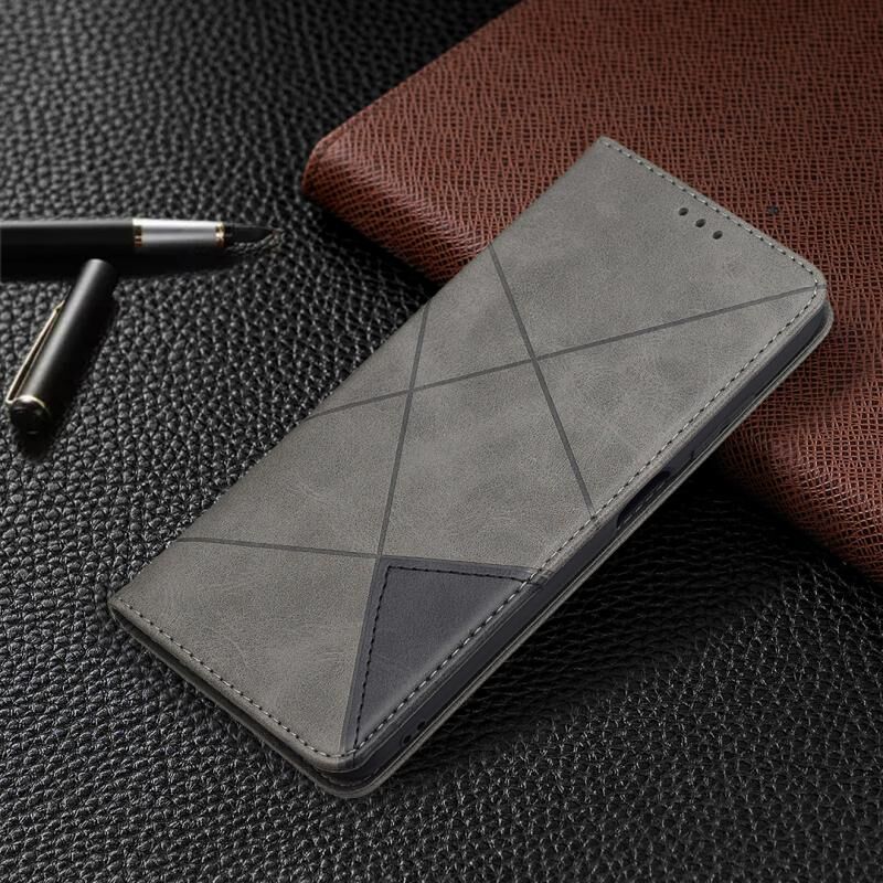 Για Samsung Galaxy A03s 164mm Rhombus υφή οριζόντια Flip μαγνητική δερμάτινη θήκη με θήκη & υποδοχές για κάρτες (γκρι)