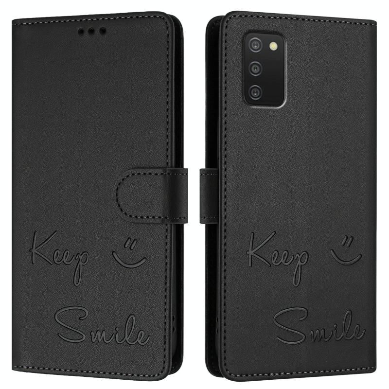 Για Samsung Galaxy A03s 164 χιλιοστά Χαμόγελο ανάγλυφο RFID δερμάτινη θήκη τηλεφώνου (Μαύρο)