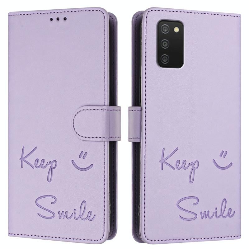Για Samsung Galaxy A03s 164 χιλιοστά Χαμόγελο ανάγλυφο RFID δερμάτινη θήκη τηλεφώνου (Light Purple)