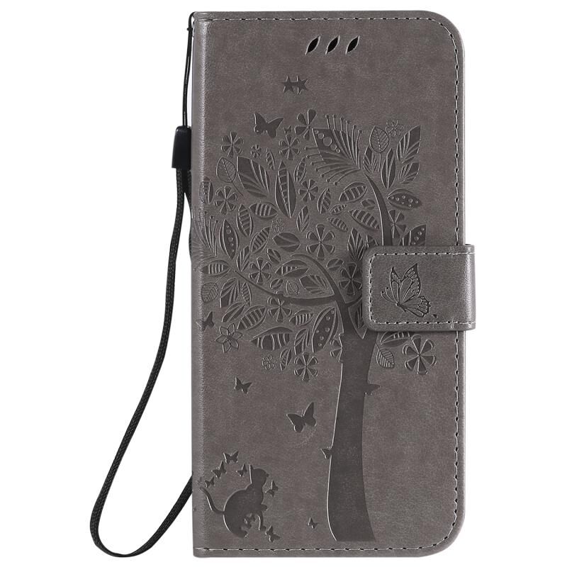 Θήκη Samsung Galaxy A03s 164mm με σχέδιο Δέντρου & Γάτας, εκτυπωμένη με θερμοτύπηση, οριζόντια, από δερματίνη PU με βάση στήριξης & θήκες καρτών & πορτοφόλι & κορδόνι (Πράσινο)