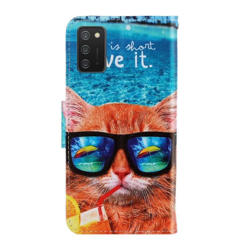 Θήκη τηλεφώνου δέρμα τύπου flip οριζόντια με σχέδιο 3D (Υποβρύχια Γάτα) με βάση και θήκες για κάρτες & πορτοφόλι για Samsung Galaxy A03s έκδοσης 164mm. (Κόκκινο)